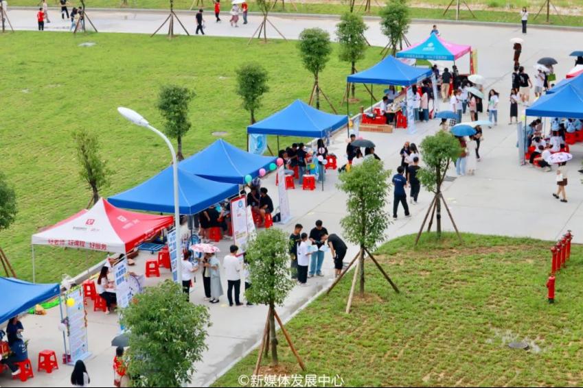 各学生组织、学生社团工作人员提前来到现场搭帐篷、摆放桌椅,早早地为此次招新摆摊做好十足的准备,以最佳状态迎接23级的“新”上人们。