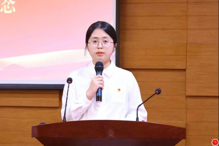 张靖怡同学代表新一届学生骨干作工作表态,并提出了三点建议:一是坚持党的思想领导,拥护党的政策方针;二是找准自身定位,明确组织责任;三是加强团队合作,锤炼奋斗精神。她表示,作为学生骨干要有先锋模范作用,要勇于担当、敢于拼搏,以艰苦拼搏、开拓创新的精神奋勇争先,续写组织新华章。
