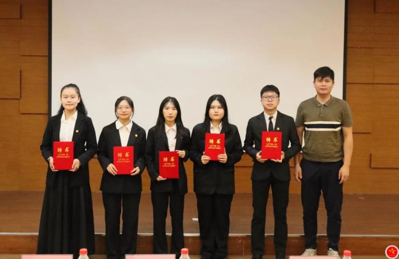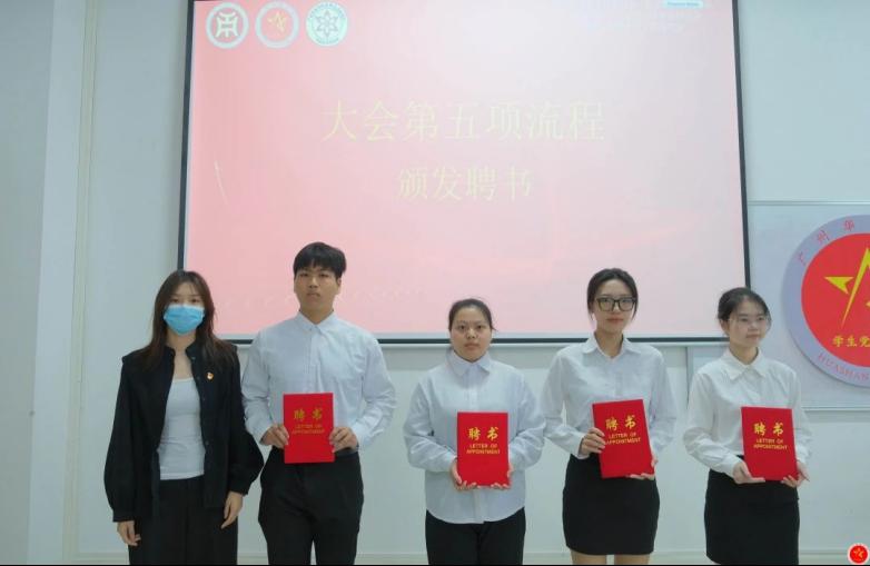 ——宣读任命文件。王国庆老师宣读新一届校学生党建工作委员会(广州校区)学生骨干的任命名单:任命郑育婷同学、黄健华同学、李诗灵同学、叶俊林同学为校学生党建工作委员会执行主任,任命朱瑶同学为校党群志愿服务队执行队长,江雨希同学为校党群志愿服务队执行副队长,同时还宣读了各工作部门负责人的任命。