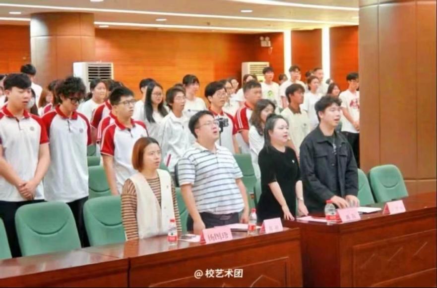 ——校飞跃艺术团常委代表叶浩林做新学期动员大会。叶浩林表示本学期以延续上年规范全团行为做标准,针对艺术团的上学年中出现的问题,提出了两点要求:第一,加强校艺术团纪律管理;第二,全艺术团成员认真学习宣传贯彻党的二十大精神,共同建设、高水平打造一批形式新颖、内涵鲜活、深受师生喜爱的艺术精品。