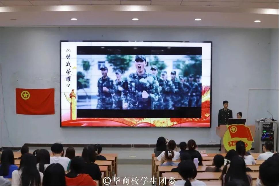 两位主讲人声情并茂的演讲,让在场的华商学子纷纷感受到了“清澈的爱,只为中国”这一赤子爱国情怀,激励了华商学子坚守初心、淬炼青春、奉献家国的理想信念,为有志向投身于热血军旅生活的华商学子吹响了奋进的号角。