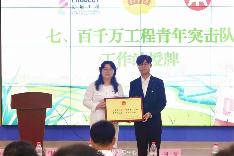 ——团四会市委周莹副书记为我校“百千万工程”青年突击队四会工作站授牌。