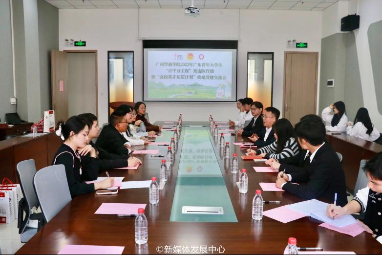校团委与团四会市委、各镇街代表开展广州华商学院2023年广东青年大学生“百千万工程” 突击队行动暨“高校英才基层计划”校地共建交流会。会上,校团委强调深化落实大学生社会实践工作,发挥好“百千万工程”青年突击队的作用,为四会、肇庆乡村振兴事业贡献力量。