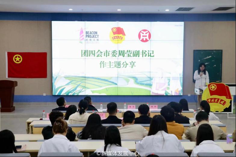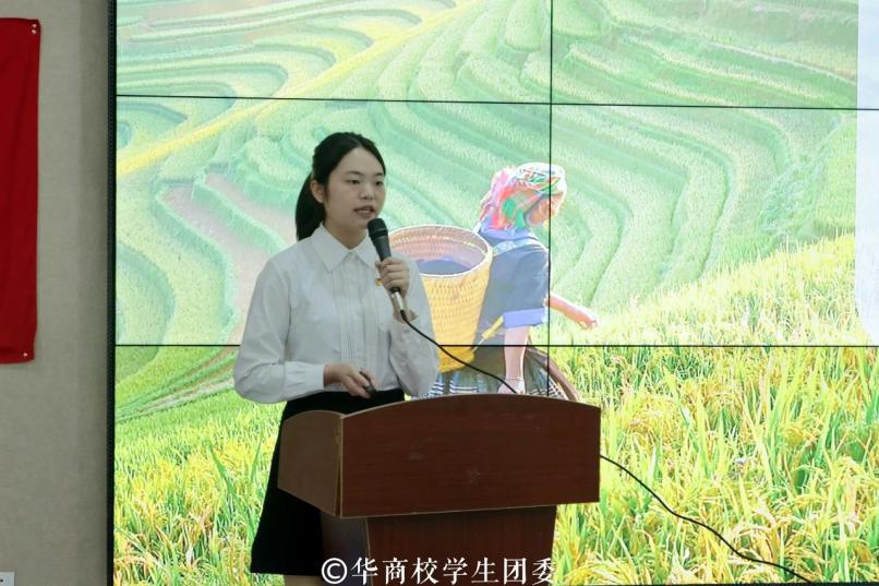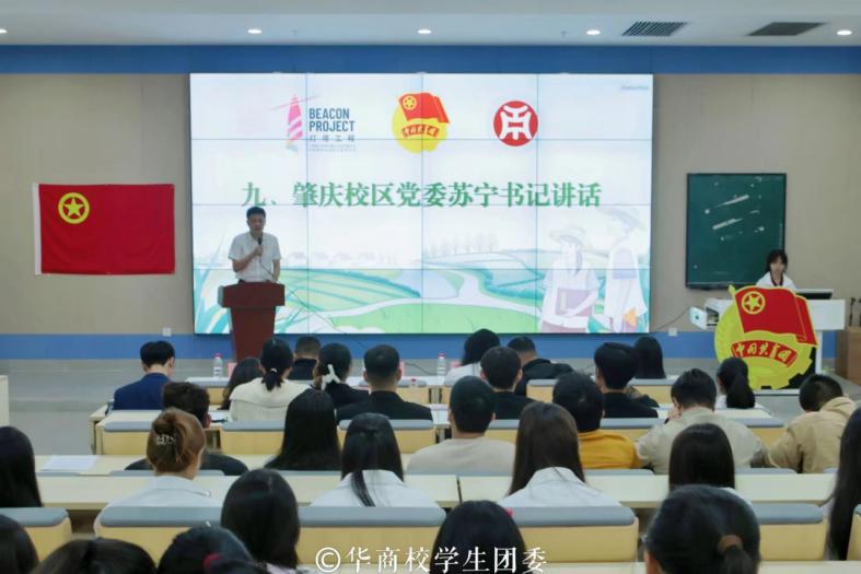 团四会市委周莹副书记肯定了华商青年在社会实践与创新创业方面取得了显著的成果,紧接着对各镇(街)团(工)委和大学生们提出了三点要求:一要凝聚共识,强化责任担当。青年大学生要深刻理解社会实践活动的重大意义,积极投身于实践。二要加强联动,形成工作合力。全力找准参与高质量发展的切入点、着力点和落脚点助力我市“百千万工程”走深走实。三要携手共建,共谋乡村振兴。构建互帮互助常态化、长效化机制,乡村振兴发展贡献青春力量。团四会市委周莹副书记为在场师生做主题分享。她提到,中国式现代化是与中国共产党领导的社会主义现代化紧密相关的,是实现强国建设、民族复兴的唯一正确道路。当代中国青年是与新时代同向同行、共同前进的一代,个性更加鲜明、思维更加活跃、视野更加广阔。在迈向第二个百年奋斗目标的新征程上,广大青年要在中国共产党领导下发挥先锋作用,坚持用科学理论武装头脑,树立人民至上的价值理念,用青春书写无愧于时代、无愧于历史的华彩篇章。