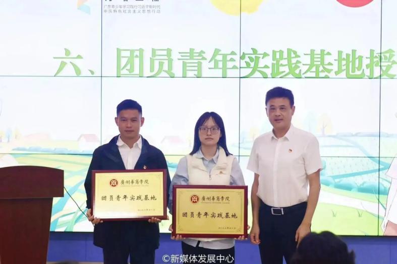 ——我校肇庆校区党委苏宁书记为黄田镇、江谷镇两个团员青年实践基地挂牌。