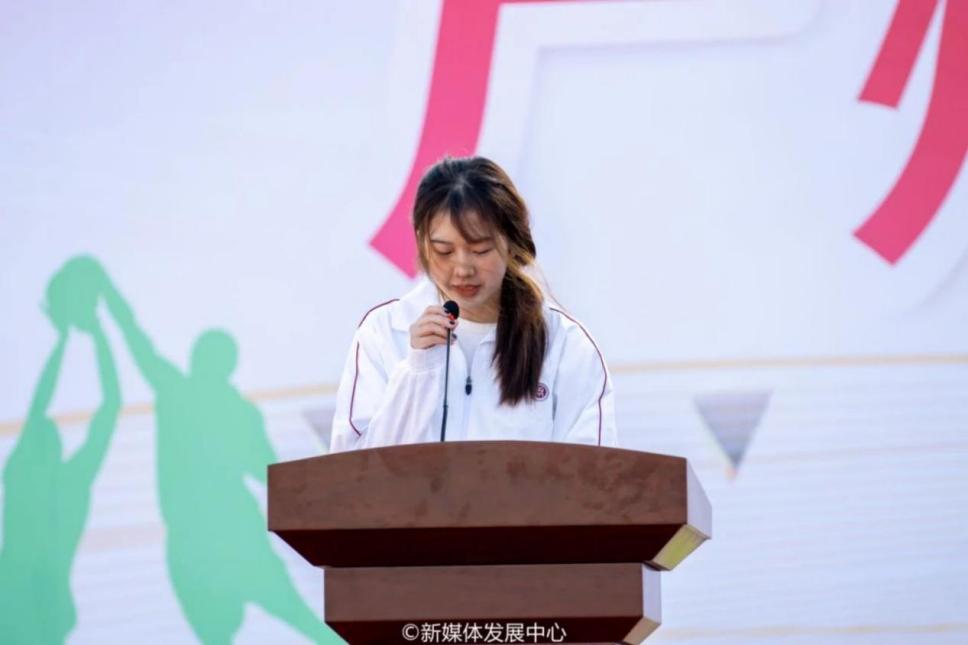 运动员代表王可可同学进行宣誓:必将严格遵守比赛规则,坚决服从裁判,尊重对手,尊重观众,以饱满的热情认真比赛,发扬顽强拼搏精神,胜不骄败不馁,赛出风格,赛出水平,发挥出最佳成绩。