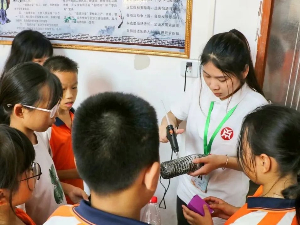 为深入贯彻习近平新时代中国特色社会主义思想,引领广大青年在社会实践中受教育、做贡献,“揭”尽全力,向“阳”而生社会实践队将以实际行动响应国家号召,到揭阳市曙明小学开展义教帮扶。团队以义教为主线,在曙明小学开展朗诵、理想包、铁枝木偶戏等多样化课程,积极开展各类活动,活动内容包括推普小能手、英语开口说、急救知识、科普动物等一系列教学活动,引导学生进行自主思考,陪伴孩子们循梦而行,向阳而生!