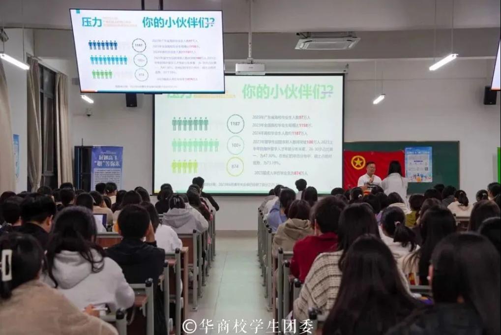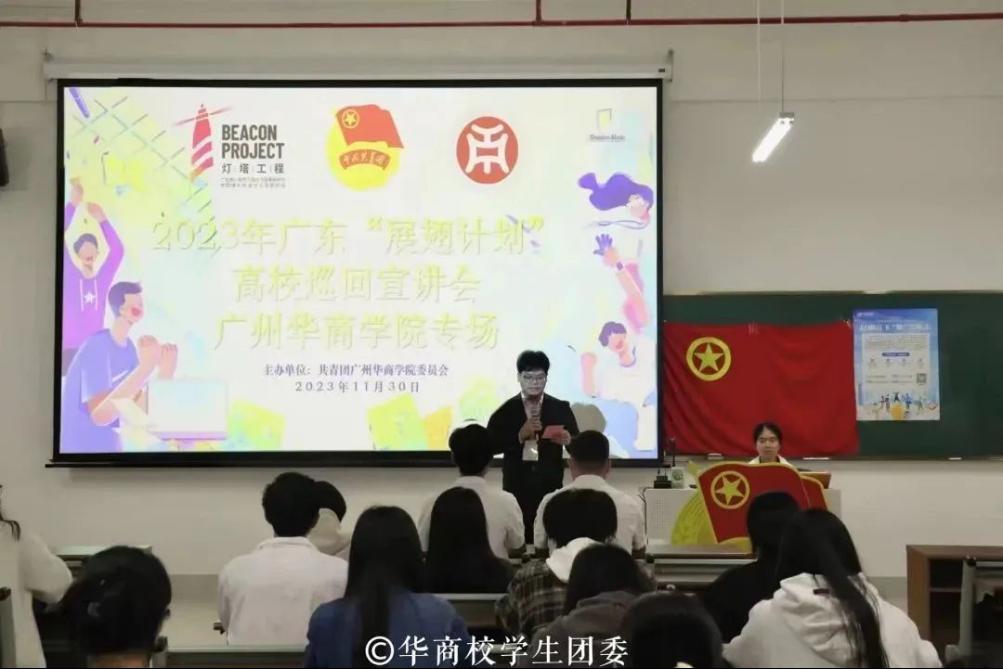 为深入学习党的二十大精神,进一步落实“展翅计划”广东共青团促进青年就业专项行动的工作要求,帮助华商青年更好地认识自我、探索自我,科学合理规划学业与职业发展,提升职业生涯规划能力,增强就业竞争力。2023年11月30日我校在肇庆校区16号楼103课室特开展2023年广东“展翅计划”高校巡回宣讲会——广州华商学院专场讲座。