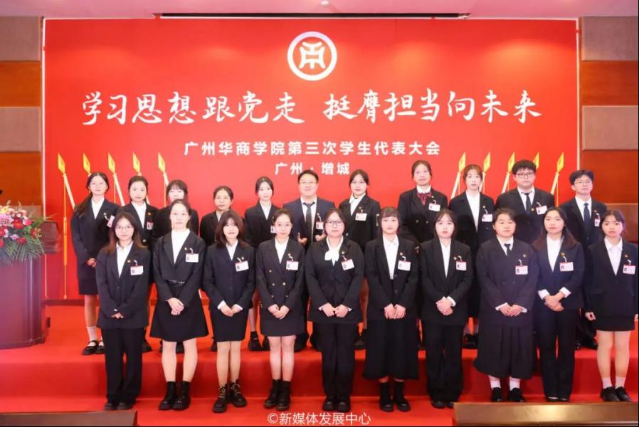 点燃青春火炬,书写未来篇章。高举团旗跟党走,唱响青春梦之歌。为深入学习贯彻党的二十大精神,全面贯彻落实全国学联二十七大工作部署,持续深化我校学生会组织改革,引领华商青年学子在为实现中华民族伟大复兴中国梦的不懈奋斗中谱写青春华章,在学校党委、省学联、学校各职能部门、各学院党委的关心与支持下,12月2日,广州华商学院第三次学生代表大会顺利召开。本次大会广州校区设主会场、肇庆校区设分会场,两校区全程连线直播。