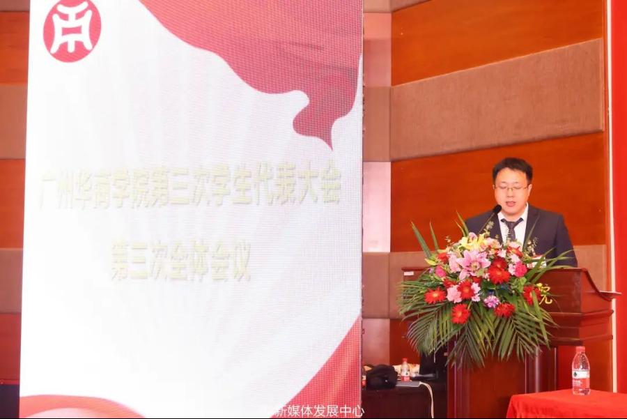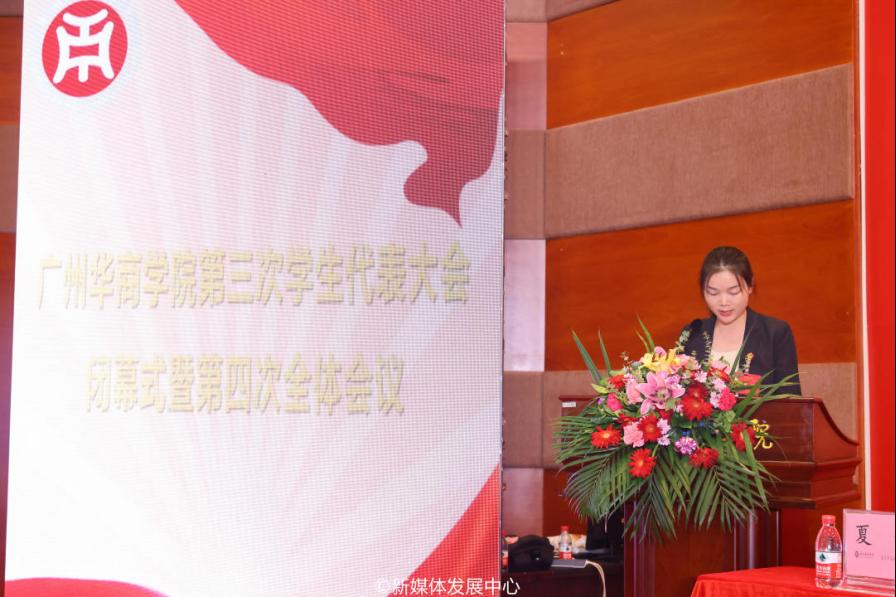 ——大会闭幕式暨第四次全体会议。12月2日16:30,广州华商学院第三次学生代表大会闭幕式暨第四次全体会议在广州校区华商会议中心四楼报告厅、肇庆校区8号楼108、109召开。出席本次会议的人员有:学校党委副书记、纪委书记、王锦秀副校长,校长助理、校党委委员许娜同志,校党委委员、数据科学学院党委副书记蒋大锐副院长,校团委陈刚书记,校团委团干,二级学院团委书记、副书记、学生会指导老师以及全体代表。