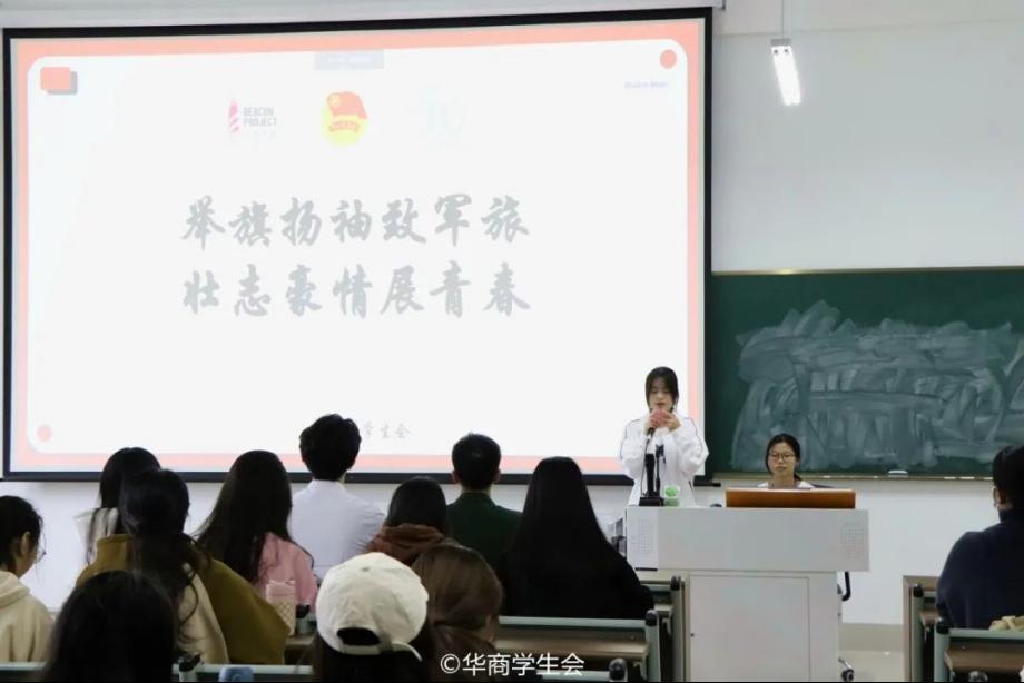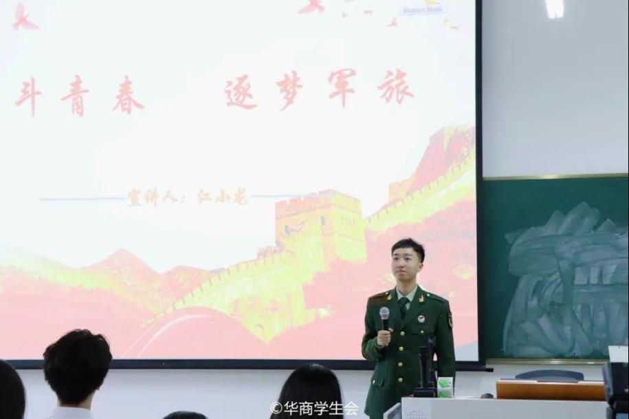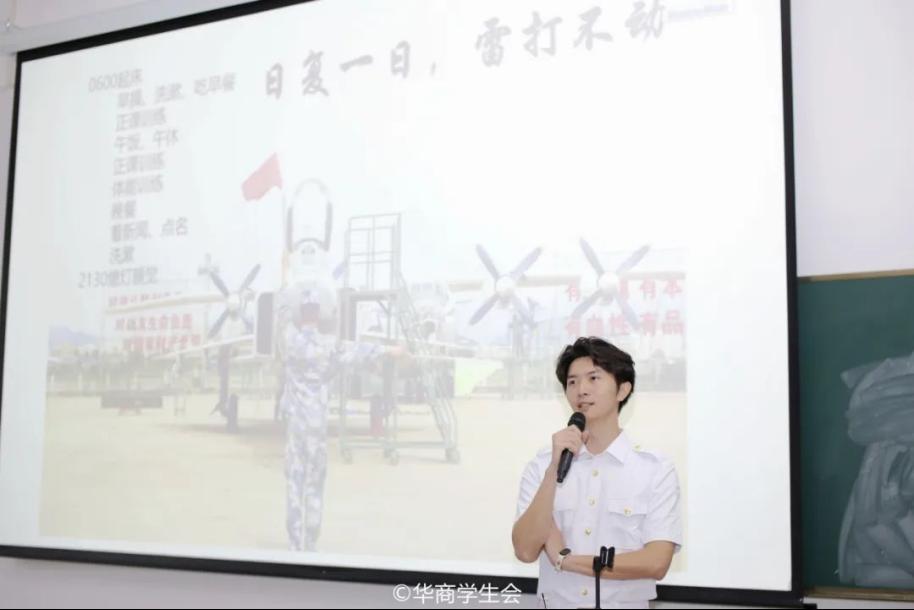 通过两位主讲人的分享,同学们对两位同学以军旅诠释青春,用奋斗书写人生的精神,以及对军旅生活有了更加深入地了解。生逢盛世,肩负重任,广大华商青年应与时代同步伐,锤炼自己,勇于开拓,积极投身强军建设,在火热的青春中放飞人生理想,用实际行动书写勇气担当,把青春之花绽放在祖国沃土之上!