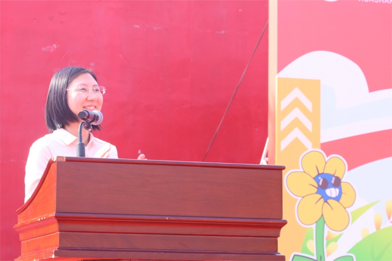 华商教育集团宣传部刘苗致辞。她指出,“平安华商 彩绘校园”普法教育趣味活动是华商教育集团与增城区各单位共同打造平安校园校地合作的新模式,从单兵作战转变为多方战略合作,实现协同创新、资源共享、融合发展,高度契合习近平总书记关于共建共治共享的新发展理念。