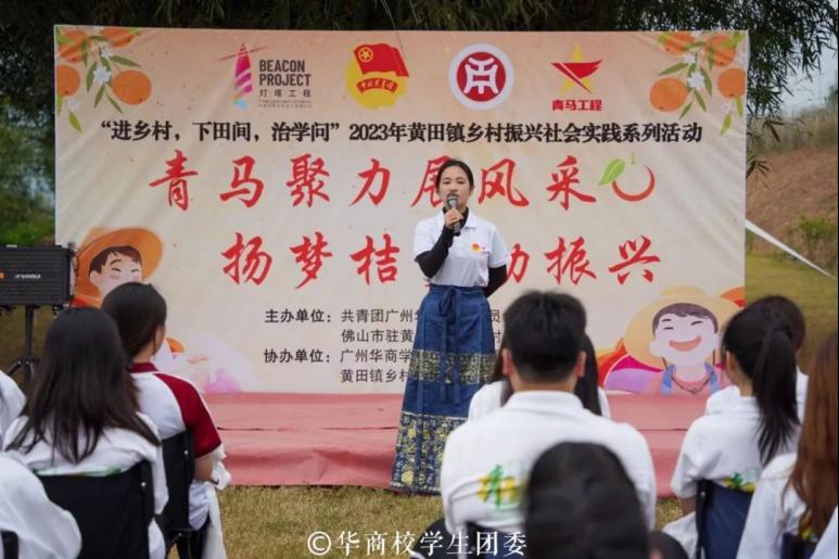 助力乡村振兴是党的二十大赋予新时代大学生的时代重任,是团的十九大给予新时代青年的光荣使命。为贯彻习近平同志在党的二十大报告中提出的乡村振兴战略,助推“百千万工程”的高质量发展,引导青马班学员将学习理论与实践活动相结合,加强校地共青团共建,提高青马班学员的专业认知和学习兴趣,深刻了解国家乡村振兴政策,培养青马班学员三农情怀,2023年12月10日,我校团委组织“青马工程”培训班学员于肇庆市四会市黄田镇开展“青马黄田宣梦桔,百千万工程振乡行”广州华商学院(肇庆校区)第十二期“青马工程”培训班素质拓展活动。
