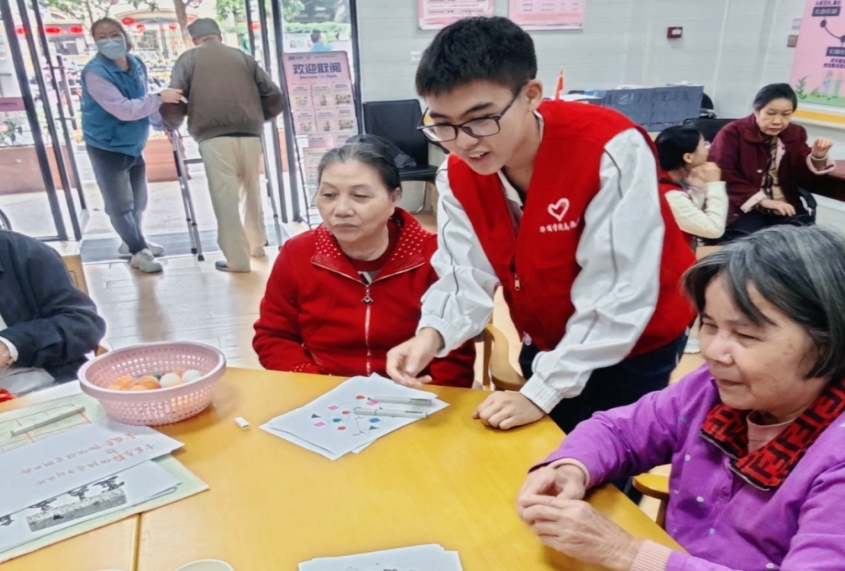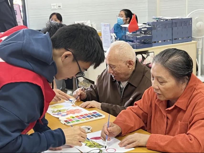 为深入学习习近平总书记关于加强新时代老龄工作的重要指示精神,引导广大青年学生对老年群体的关注,传承尊老敬老的优良美德,鼓励华商学子走进社会、深入基层,积极投身社会实践,广州华商学院团委、青年志愿者协会联合增城区综合养老服务中心于2023年10月31日开展“老少共融,精神共悦”第二期智慧助老志愿活动。本次活动共有16名志愿者参加,服务时间长达6周,主要服务内容为,志愿者们为养老院的托管老人开设手工兴趣班,丰富老人的精神文化生活。