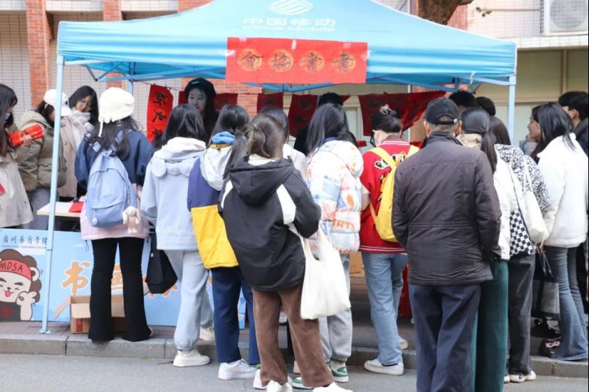 妙笔生花送祥瑞,翰墨飘香添年味。为迎接龙年春节的到来,弘扬中华优秀传统文化,向华商师生传递美好的祝福,营造喜庆祥和的节日氛围,12月7日、22日10:00-17:00,在学校党委领导下,我校团委指导书画协会在双校区开展“翰墨凝香 辰龙送福”挥春送福活动。
