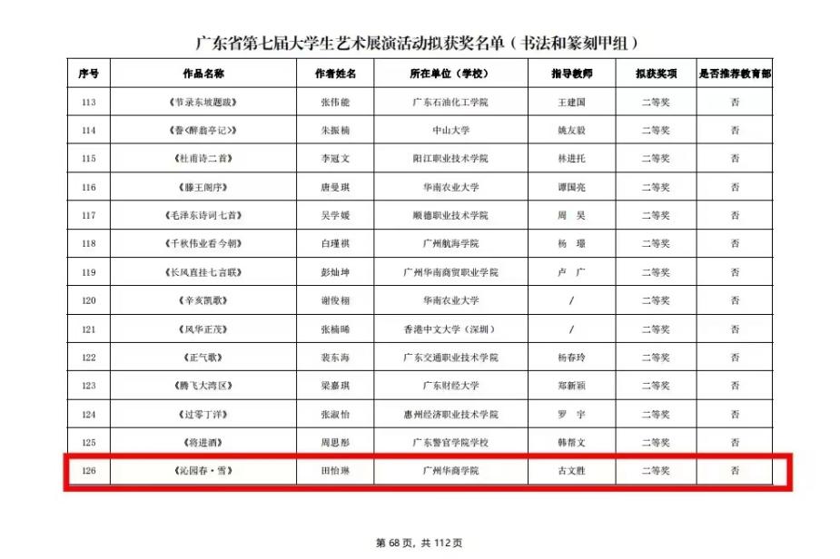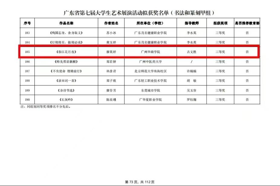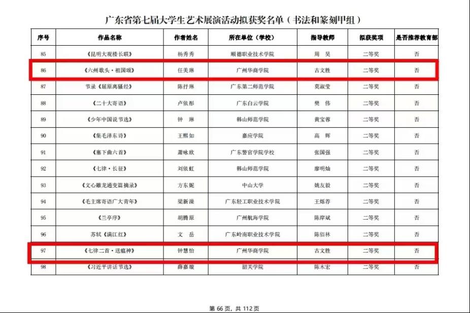 在此次的活动中,我校共有1组声乐类节目,10组书法和篆刻类作品获得奖项。