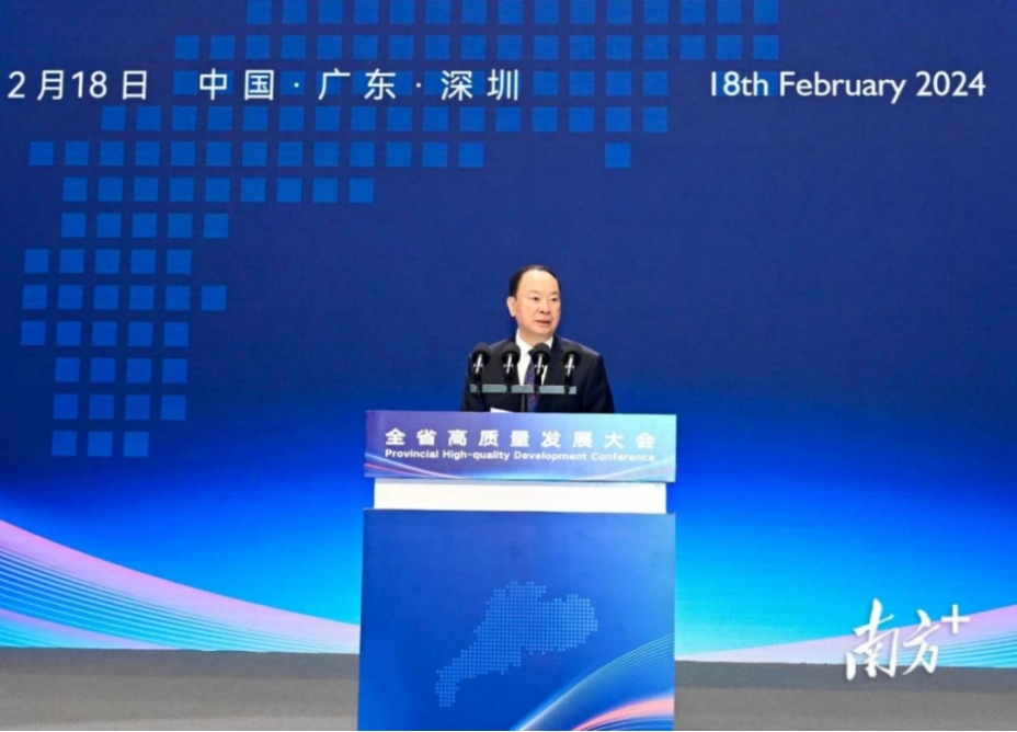 2024年2月18日,农历新春第一个工作日,广东省委、省政府召开全省高质量发展大会。大会紧扣高质量发展主题,促进产业和科技互促双强,全面提升科技高水平自立自强能力,加快建设现代化产业体系,不断塑造发展新动能新优势。省委书记黄坤明在大会上强调:要视人才为珍宝,让广东的人才金字塔“塔基更实、塔身更强、塔尖更高”。要与企业同奋斗,实现传统产业老树新花,新兴产业竞相发展,未来产业孕育孵化。要用市场育动能,营造更好的创新生态,加快形成创新发展的优势、胜势。要向改革要活力,持续营造有利于创新的政策和制度环境,切实打通制约产业科技创新的卡点堵点。要更加紧密地团结在以习近平同志为核心的党中央周围,高扬自信自强的精神,展现日新月异的创造,奋力推动广东在推进中国式现代化建设中走在前列,以优异成绩向新中国成立75周年致敬!