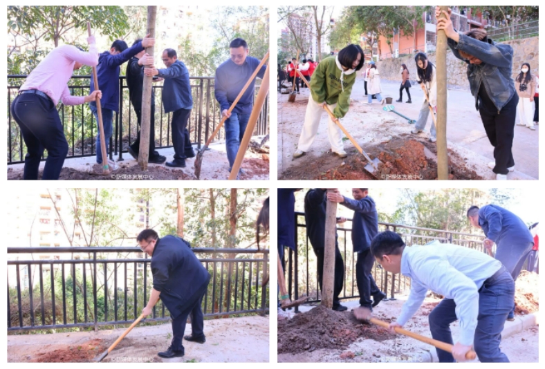铲土植苗、培土围堰、提水浇灌……现场一片忙碌、气氛热烈。为保证树苗存活,大家认真做好每一个步骤,携手种下了紫花风铃、四季桂等树苗,用实际行动诠释了“人人爱绿、积极植绿、自觉护绿”的理念,为华商校园绿色建设贡献力量。