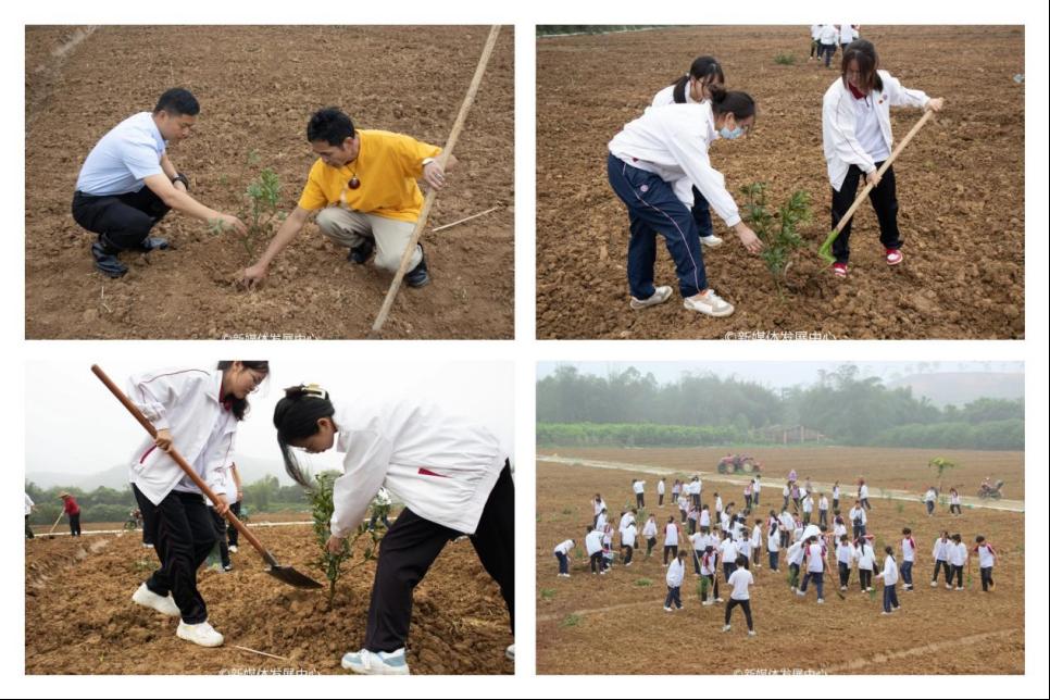 绿美广东,青年先行。团四会市委副书记曾华智、黄田镇党委副书记、佛山市驻黄田镇帮镇扶村工作队队长梁柱及华商师生代表来到黄田镇江头上寨村进行植树护绿志愿活动。活动开始前,柑橘种植专家严勇国老师为同学们讲解关于种植果树的方法及注意事项。同学们仔细聆听,认真学习,迅速掌握相关技巧。随后,大家分组合作、互相配合、干劲十足,纷纷拿起铁铲、铁锹,种下百余棵柑橘树苗,以实际行动弘扬劳动精神,为“绿美广东”行动、乡村振兴事业贡献华商力量。