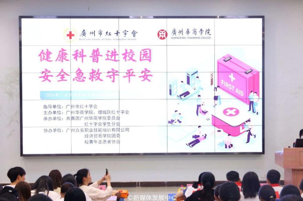 为进一步营造更加安全、和谐的学习环境,切实保障师生生命安全和身体健康,提高华商师生对急救知识和技能的认识,鼓励同学们学习基本的急救知识并培养应对突发状况的能力,3月28日18:45 ,在广州市红十字会的指导、增城区红十字会的支持下,由我校团委、红十字会学生分会、经济贸易学院团委组织开展的“健康科普进校园 安全急救守平安”安全急救知识讲座在广州校区励志楼C408顺利开展!广州校区350余名师生参加本次讲座。