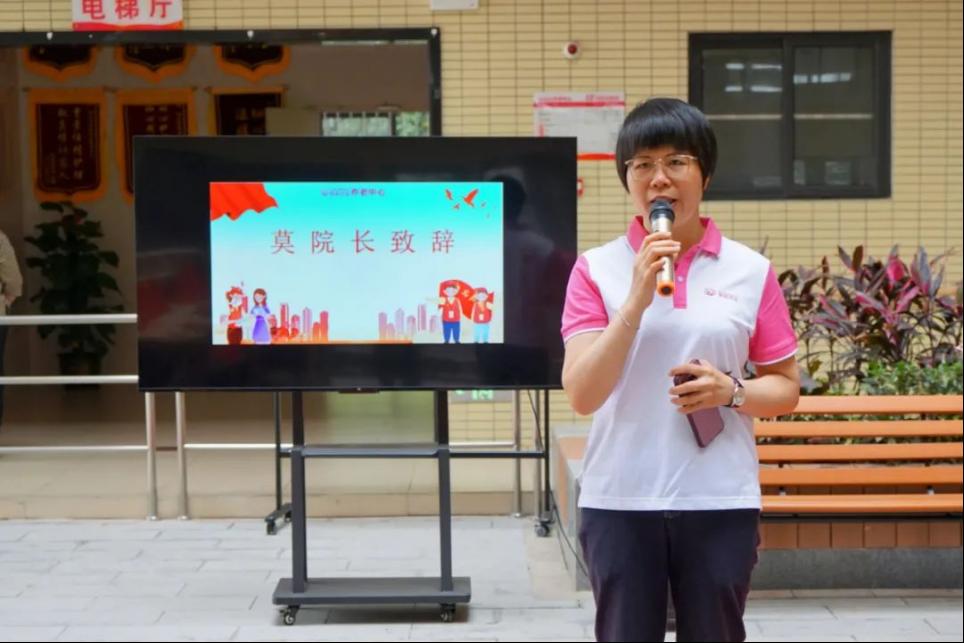 四会市春晖优品养老中心莫希璇院长介绍养老中心的基本情况,并对华商师生志愿者们的到来表示欢迎与感谢,鼓励同学们积极参与社会实践,为和谐社会做青年贡献。