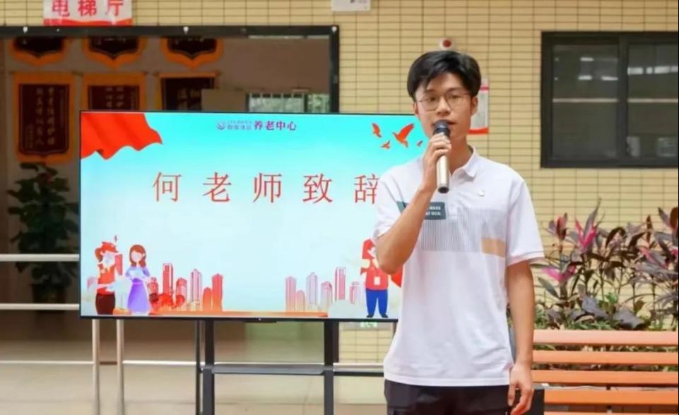 我校团委何以立老师致辞。尊老爱幼是中华民族的传统美德,他勉励华商学子要以实际行动积极倡导互助友爱的社会主义核心价值观,助力尊老爱老的良好社会风尚。