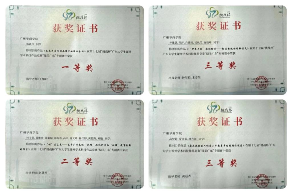 ——第十七届“挑战杯”广东大学生课外学术科技作品竞赛“绿美广东”专项赛。我校作品在第十七届“挑战杯”广东大学生课外学术科技作品竞赛“绿美广东”专项赛中荣获省级一等奖1项、二等奖1项、三等奖2项,为助力绿美广东生态建设贡献华商青年智慧。