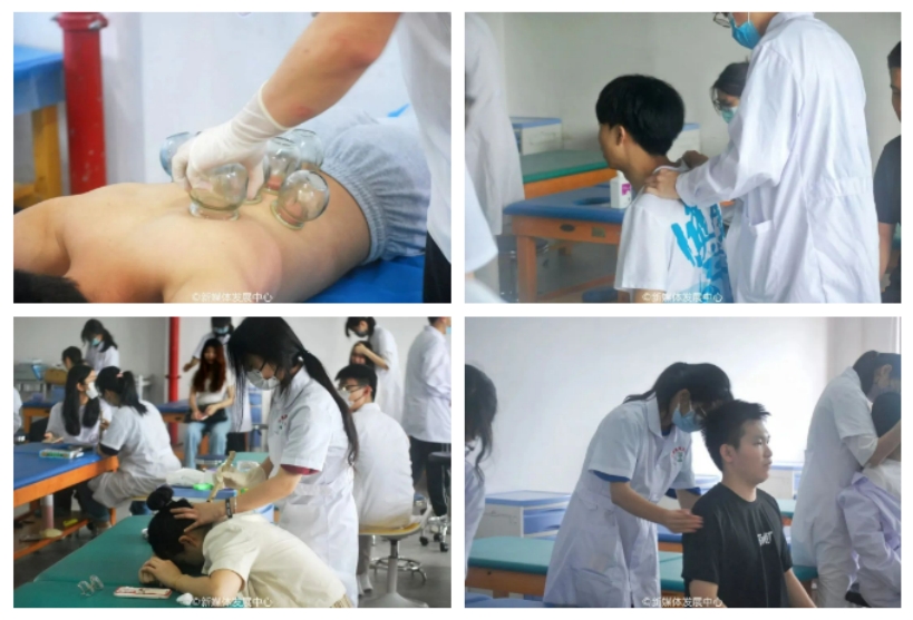 活动现场气氛热闹,在校师生、教职工络绎不绝,在现场志愿者的引导下有序排队等待问诊。健康医学院的志愿者耐心细致地为师生提供中医推拿、贴耳穴、拔罐、红外线治疗、健康咨询和血压测量等,并根据师生健康状况提出饮食调养、体育锻炼等建议。