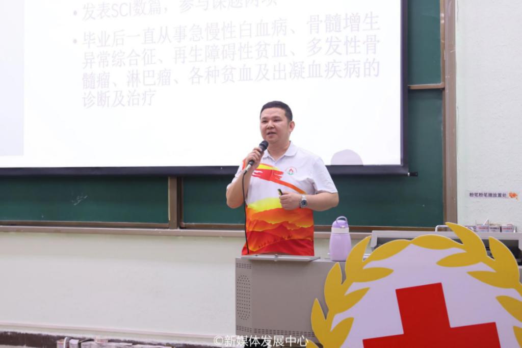 随后,广东省医疗协会血液病分会委员、广东省感染性疾病精准治疗专委员朱朝辉教授为同学们展开地贫知识宣讲授课。朱教授以数据、案例为切入,向同学们科普了地中海贫血防控知识。朱教授首先介绍了地中海贫血的基本知识,包括这种疾病的病因、症状和影响等。接着,在救助方面,朱教授强调了早期诊断和治疗的重要性,通过血液检查和基因检测,可以及时发现地中海贫血患者,并采取相应的治疗措施;在预防方面,朱教授指出,由于地中海贫血是遗传性疾病,因此预防的重点在于减少其发生率。朱教授强调,通过遗传咨询和婚前检查,了解自身及伴侣的基因情况,可以降低后代患病的风险。朱教授的授课内容丰富、深入浅出,使同学们更好地学习到关于应对地中海贫血问题,提高了同学们对地中海贫血的认知和关注程度。