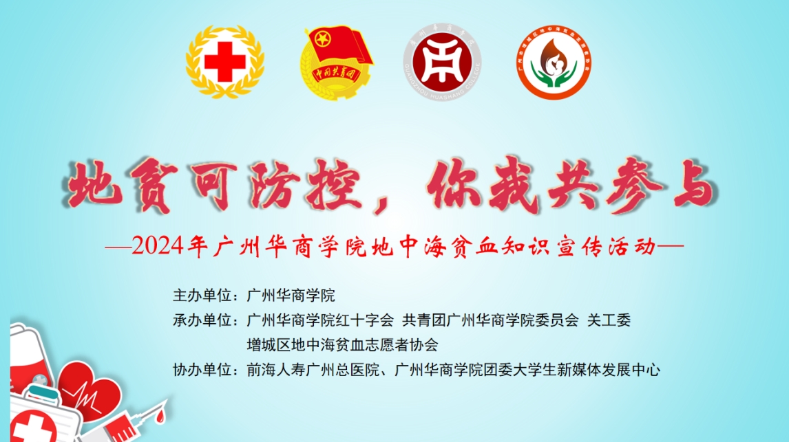 为进一步加强地中海贫血防控的宣传教育,动员更广泛的力量共同参与地中海贫血救助与预防工作,引导广大同学为健康中国建设贡献华商力量,4月23日15:00,在增城区地贫志愿者协会与前海人寿广州总医院组织的支持下,学校团委联合关心下一代工作委员会、广州华商学院红十字会在广州校区励志楼D408开展“地贫可防控 你我共参与”的地中海贫血知识宣传活动。本次活动吸引近350多名师生参与,活动旨在让华商学子关注与了解地中海贫血相关防控知识和了解地贫防控的重要性,增强同学们对地中海贫血防控意识。