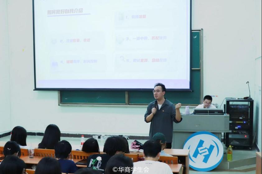 此外,他谈到,如何做好自我介绍在面试过程中也尤为重要。宋老师为大家提供了几点建议:1.做足准备,保持自信,避免支支吾吾。2.衣着得体,注重自身形象。3.介绍优势,切忌东拉西扯。4.铺排有序,控制时间。5.善于总结,学习自我介绍的“套路”。面试并非一蹴而就,面对打击与失败,同学们要保持冷静和积极的态度,分析自身原因并加以改进。在互动环节,同学们积极参与,提出自己在面试过程中遇到的问题,宋老师一一进行解答,现场气氛热烈。