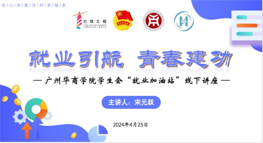 为帮助同学们提高面试技巧,增强就业竞争力和自信心,4月25日,校学生会在广州校区励志楼D408举办“就业加油站”主题讲座。本次讲座由经济贸易学院党委副书记、学生工作办公室主任宋元跃老师主讲,吸引300+名学生关注参与。