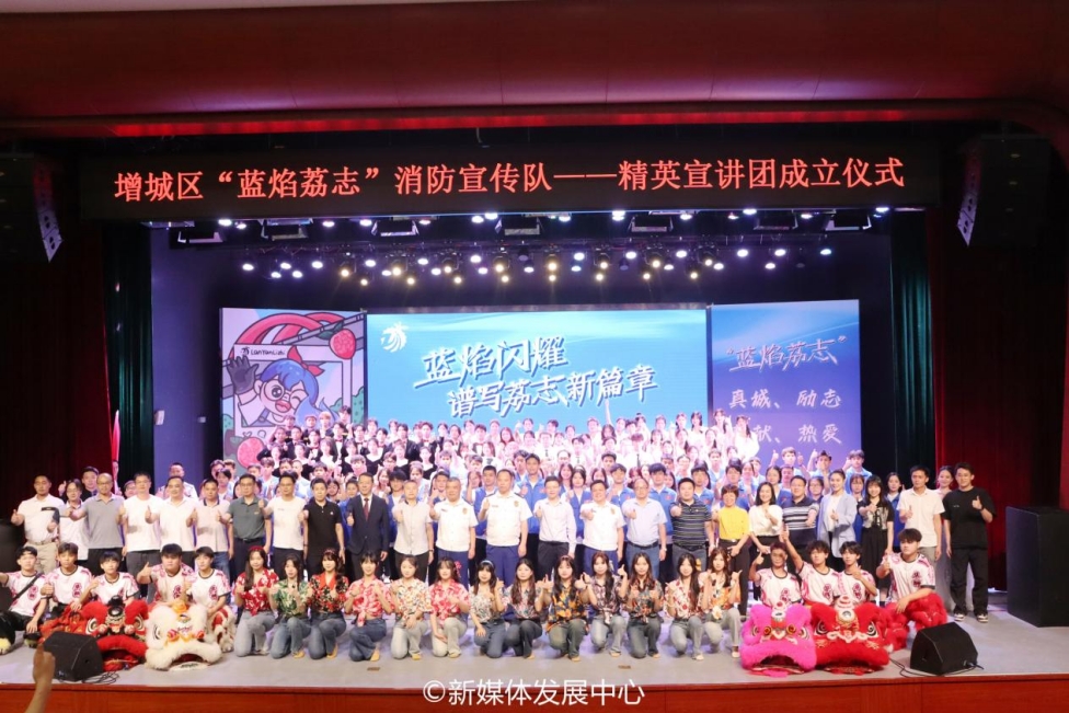 5月10日晚,由广州市增城区消防救援大队主办、广州市增城区青少年宫承办、广州华商学院、广州华立学院协办的“蓝焰荔志”精英宣讲团成立仪式活动在增城少年宫小挂绿演艺中心顺利开展。广州市消防救援支队副支队长李土恩、团增城区委副书记温振区、广州市增城区消防救援大队大队长刘飞、广州华商学院副校长吕峻闽、广州华立集团董事长助理陈积斌等领导嘉宾出席活动。为展现华商青年风采,传递青春正能量,我校团委、后勤保卫处带领校飞跃艺术团、校“蓝焰荔志”消防宣传队80余名学生参加本次活动。