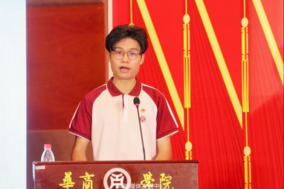 学生代表广东省优秀学生骨干何以立发言。他表示,作为新时代华商青年,要牢记习近平总书记殷切嘱托,青春为中国式现代化挺鹰担当,肩负起新时代新征程赋予的使命任务,争做走在时代前列的奋进者、开拓者、奉献者。要勇担时代使命,求知探索,以青春之躯,执青春之笔,书写奋进奉献的篇章,用智慧与勇气践行青春誓言,以青年人的初心和热血写就不负韶华、不负时代、不负人民的答卷。