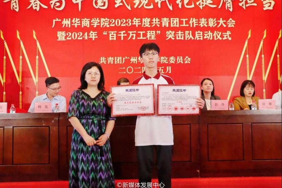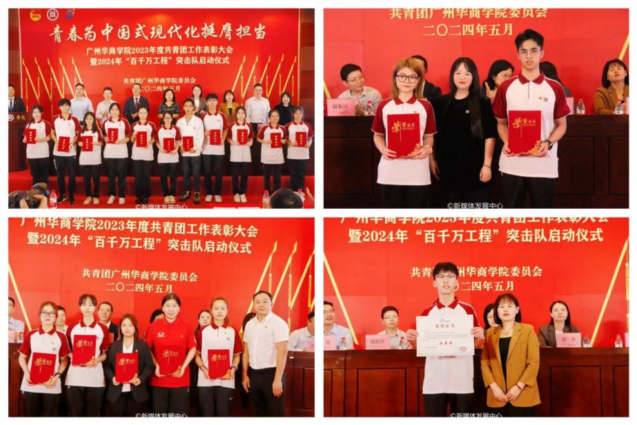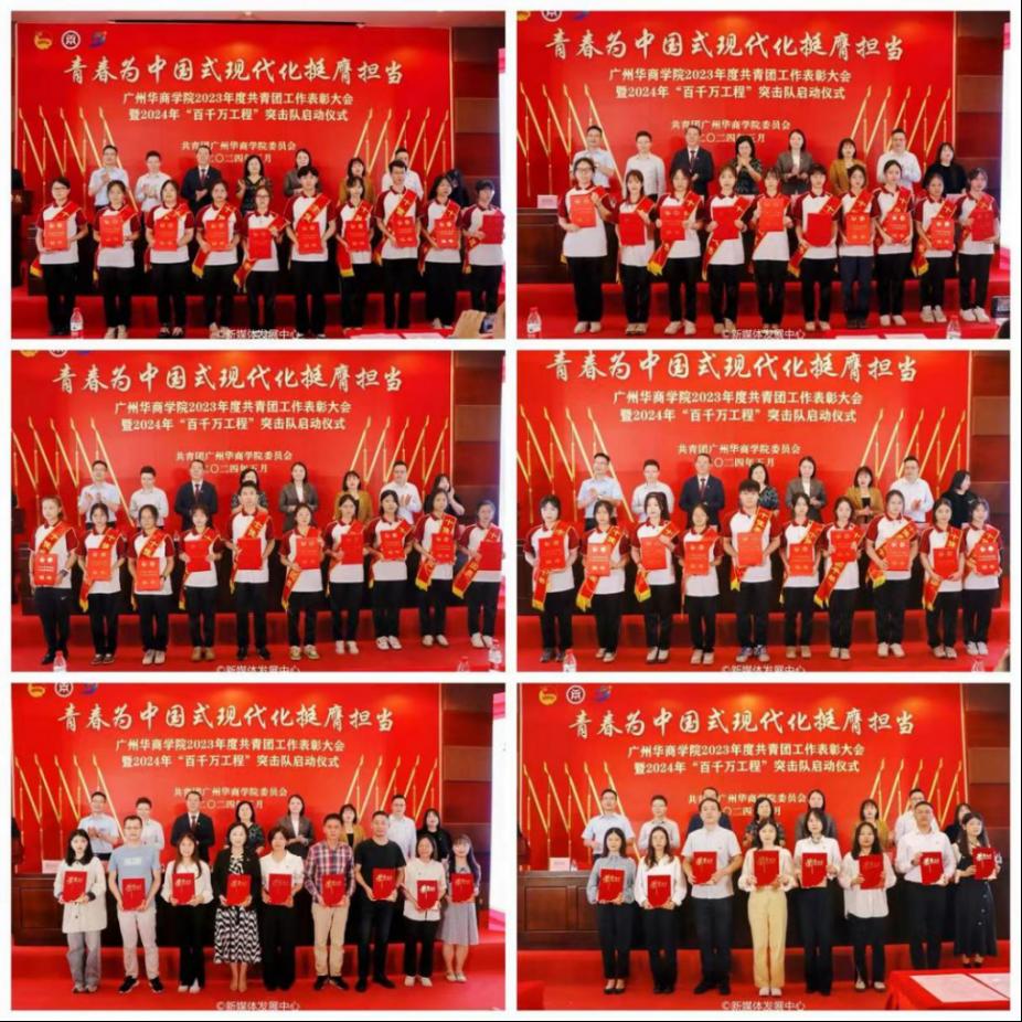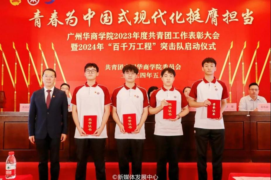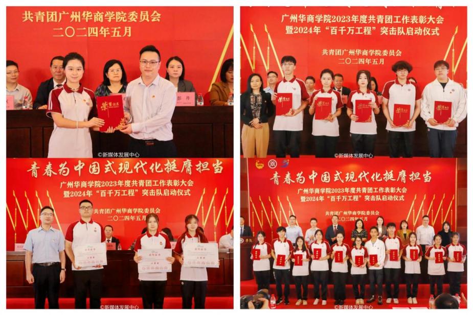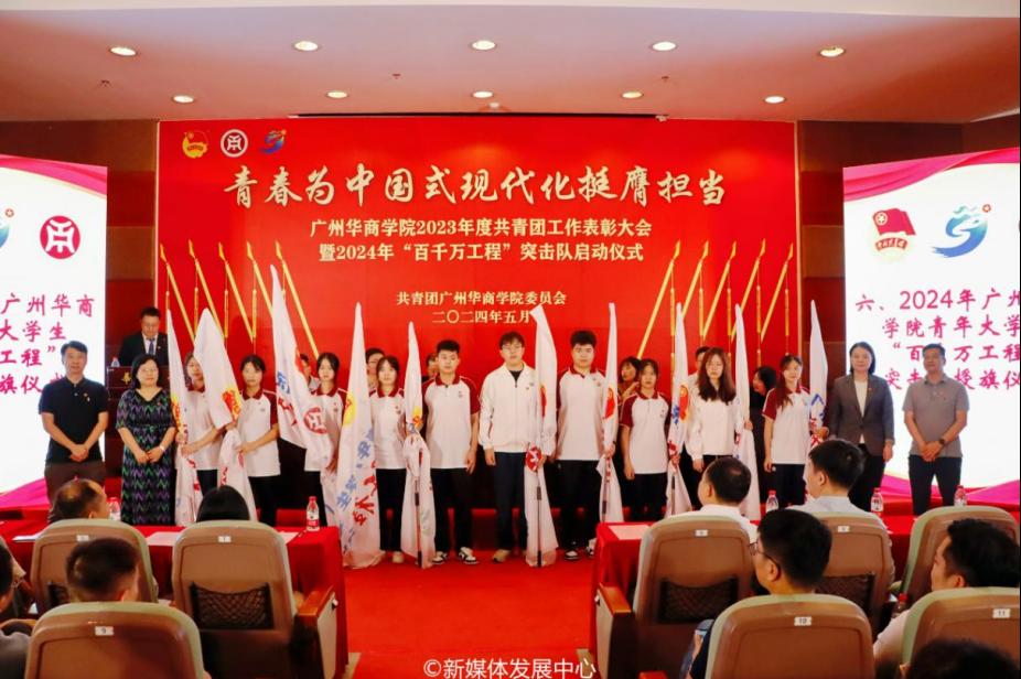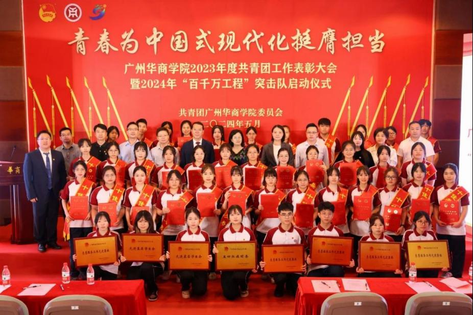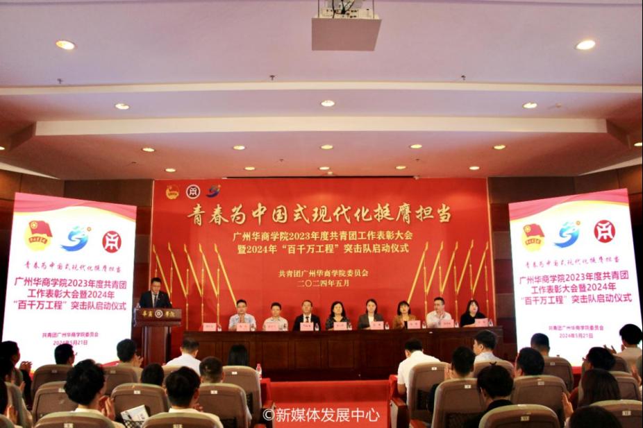 为深入学习贯彻党的二十大精神,全面领会习近平新时代中国特色社会主义思想,学习领悟习近平总书记五四青年节寄语精神,弘扬五四精神,表彰先进典型,发挥榜样作用,进一步团结和凝聚全校青年力量,激励华商青年挺膺担当、奋勇争先,5月21日下午,广州华商学院2023年度共青团工作表彰大会暨2024年“百千万工程”突击队启动仪式在广州校区国际会议中心四楼报告厅顺利举行。