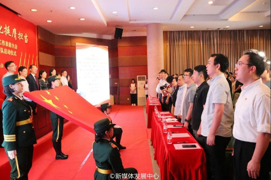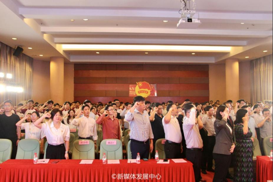 杨燕平部长带领全体师生重温入团宣誓词。“我志愿加入中国共产主义青年团……为共产主义事业而奋斗”,现场全体人员高举右拳,面向团旗庄严宣誓,重温入团誓词,坚定理想信念、牢记使命担当的青春誓言。
