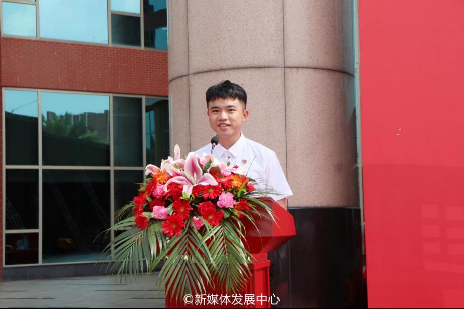 毕业生代表戴世泽同学发言。毕业生代表戴世泽向学校领导、老师、一直陪伴的各位同学以及校内每一位工作人员,表示最衷心的感谢和最崇高的敬意。他谈到,毕业生们会奔向五湖四海,走不同的路,见不同的人,但都有同一个身份——华商人。大家将永远把“厚德、励志、博学、创新”的校训奉为圭臬,用实际行动去当好华商的代言人。