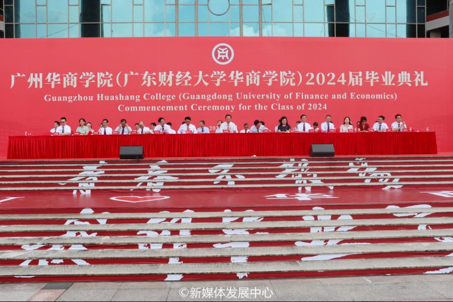 出席本次典礼的嘉宾有:华商教育集团董事长廖榕就博士;广东财经大学党委常委、副校长邹新月教授;中国科学院院士、学校校长陈新滋教授,学校党委书记陈玉欢教授,学校副校长范忠宝教授,学校副校长刘少波教授,学校副校长王卫平教授,学校副校长吕峻闽教授。华商教育集团副总裁郭志明先生,副总裁刘文琦女士,副总裁廖旭东先生。学校顾问王锦秀女士。参加今天毕业典礼的还有校长助理、各二级学院领导、职能部门负责人、师生代表。本次大会由许娜副校长主持。