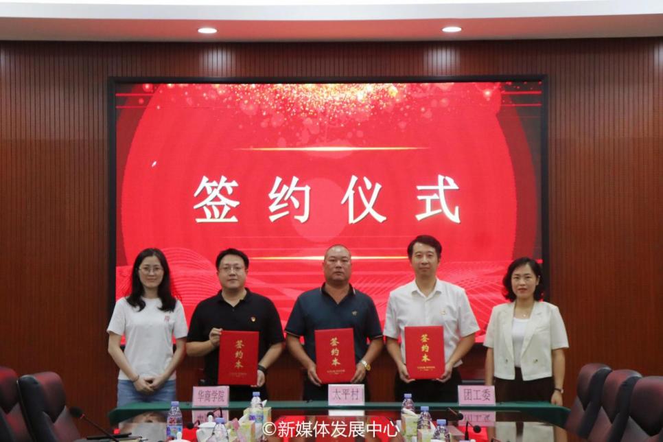 共青团广州市增城区荔湖街工作委员会、共青团广州华商学院委员会依次与太平村、罗岗村、明星村签订协议书。