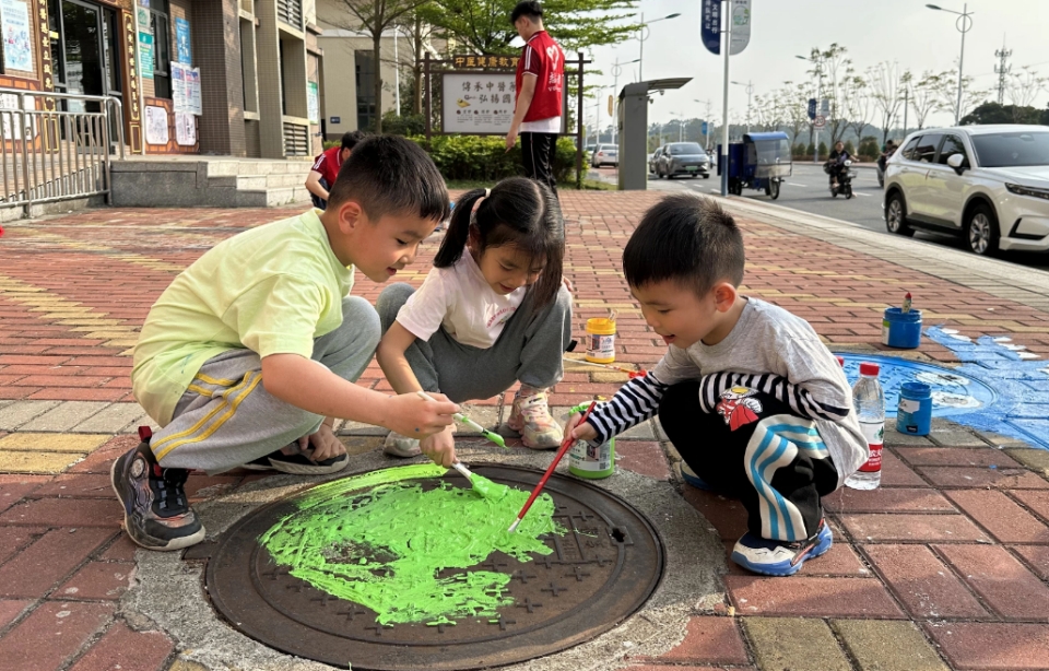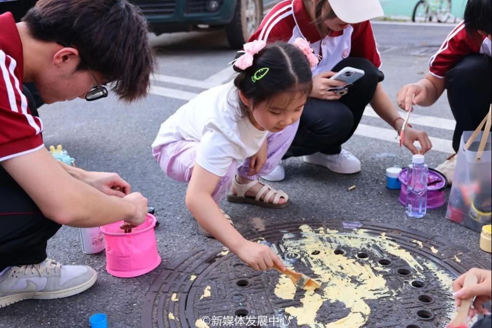 创意井盖吸引不少村民朋友驻足观看,并加入其中。大朋友、小朋友共同参与,一起打造优美、整洁、宜居的生活环境。创意井盖绘画以别样的方式传播文明和绿色环保理念,帮助村民们在日常生活中浸润新风尚,共同营造、建设和谐美好的社区文化氛围。