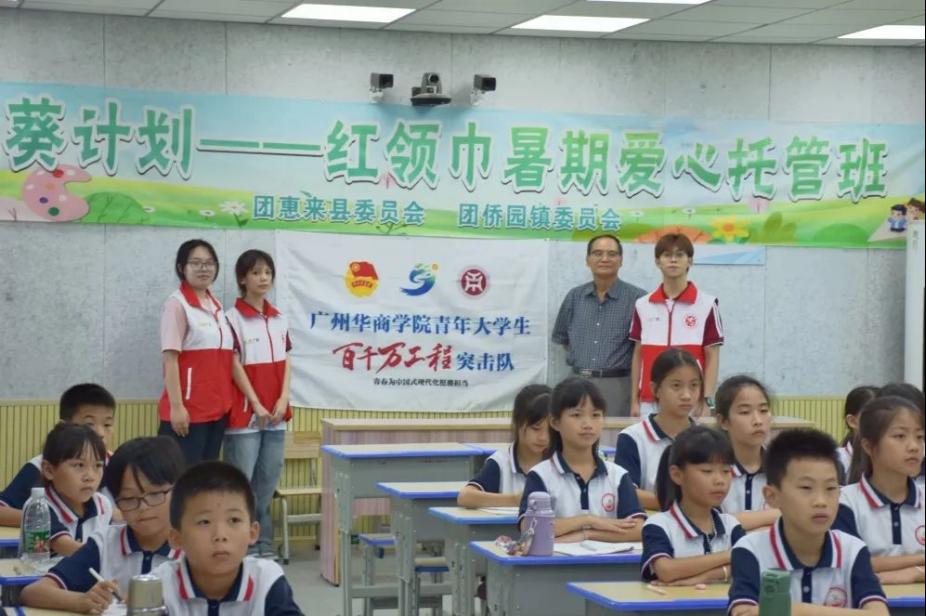 广州华商学院李志厚教授为实践团指引方向。李志厚教授作为指导老师谈到,广州华商学院教师教育学院创新创业协会社会实践团依托特色支教、科学课堂、安全宣传以及红色文化教育等多元化活动形式,为侨园镇的文化建设和绿美广东建设注入青春力量,他衷心感谢惠来县侨园镇领导对此次社会实践活动的鼎力支持与帮助,预祝此次活动取得圆满成功。