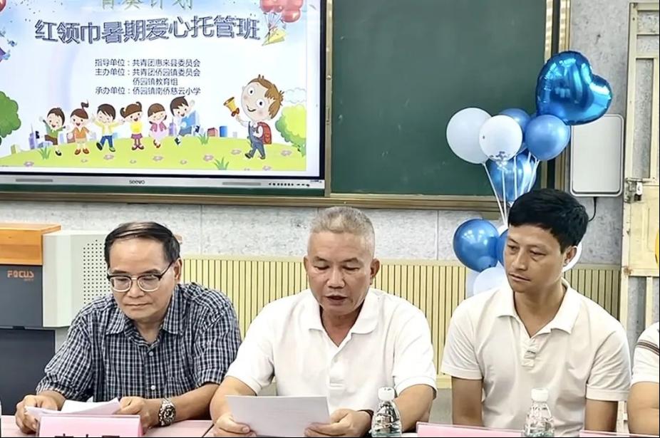 团县委书记王冠敏作致辞。启动仪式伊始,王冠敏书记表示,侨园镇作为此次“育葵计划”暑期爱心托管班项目的第一站,首先要感谢侨园镇政府领导及广州华商学院教师教育学院创新创业协会实践团对此次活动的大力支持。希望各位志愿者能够继续发扬“奉献、友爱、互助、进步”的志愿精神,以饱满的热情和专业的态度投入到暑期爱心托管班的服务工作中去,积极组织开展各项教育教学活动,用实际行动践行志愿服务精神;最后,希望志愿者们能够努力学习,积极参与各项活动,勇敢展现自我,度过一个充实而有意义的暑假。