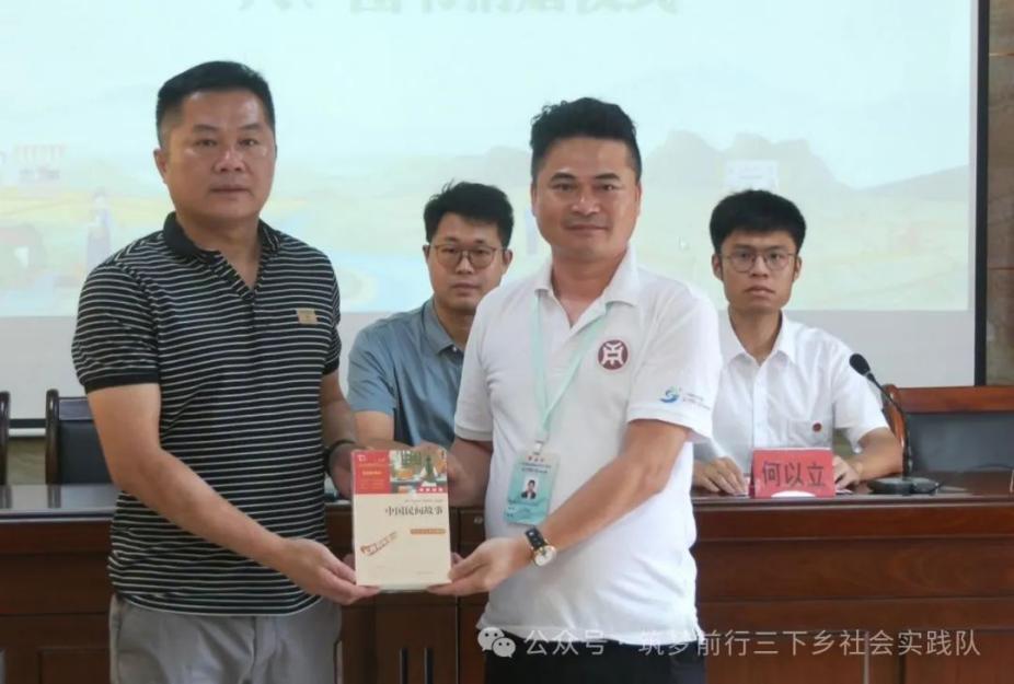 捐赠仪式。“筑梦前行”社会实践队指导老师盛罗生代表实践队与白垢学校副校长邱创权举行公益捐赠仪式。邱创权副校长对实践队的捐赠表示衷心的感谢。实践队队员们希望能以点滴之力,助力白垢学子畅游书海。