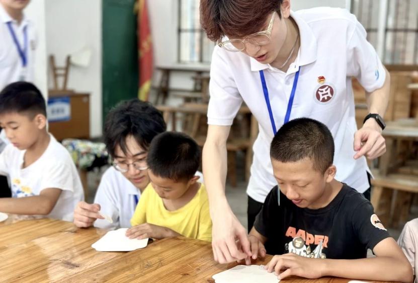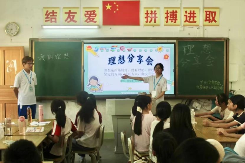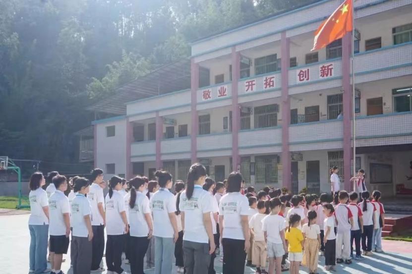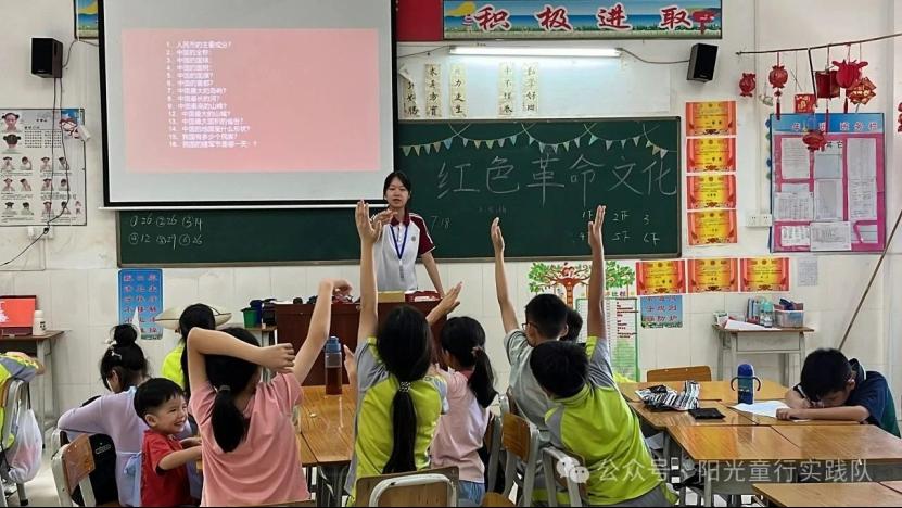 ——阳光“童”行百千万工程实践队。为积极响应党的二十大推行的教育方针,坚持“三全育人”的教育方针,全面贯彻党的教育方针、全面提高教育质量、全面落实立德树人根本任务,2024年7月15日至7月26日,广州华商学院阳光“童”行实践队前往广东省四会市大沙镇安平名宇学校开展为期十二天的义教活动。实践队结合中华优秀文化,开设了红色文化主题教育活动、文明生活课程、心理课程、安全课程、实验课程、艺术素养课程、劳动课程等等,帮助他们成长为具有社会责任感和全面发展的新时代青年。实践队秉承“教育为人民服务”的理念,结合“家、校、社”共促教育发展理念,通过采访学生及家长,深入了解他们的教育需求和期望。通过与向杰校长的沟通,了解实践地的教育现状,为构建一个共融共促的教育发展社会注入活力。