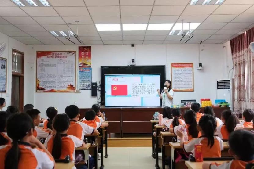 ——“青衿萤火”百千万工程突击队。为传承弘扬“两弹一星”精神,引导学生坚定科技强国的信心,勇于攀登科学高峰,为国家科技进步贡献力量,为中国式现代化挺膺担当。今年7月初,广州华商学院“百千万工程”突击队“青衿萤火”实践团赴广东省揭阳市揭东区开展社会实践活动。实践队员开展了“两弹一星”精神宣讲课程、垃圾分类课程等主题课程,通过课程与游戏互动相结合,在趣味课堂中带领同学们学习知识,培养同学们内心热爱科学、热爱祖国以及保护环境、低碳生活的种子,在实践中为乡村教育贡献青春力量。