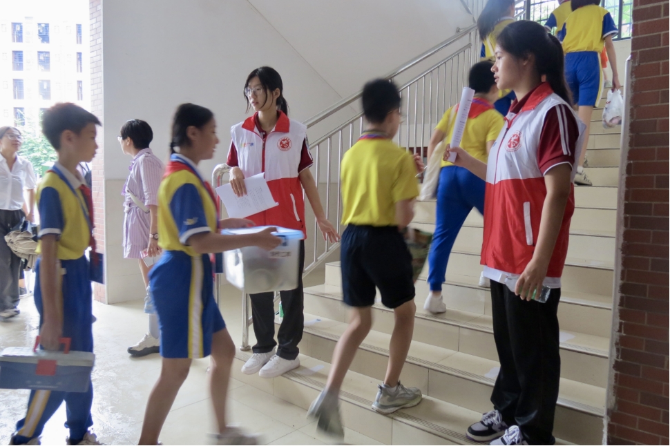 ——四会市第二届青少年科技实践能力挑战赛。2024年9月21日,四会市第二届青少年科技实践能力挑战赛在四会市岭南学校顺利举办。校区团委、青年志愿者协会组织肇庆校区20余名志愿者协助开展此次活动。活动期间,华商志愿者展现热情与担当。他们以“志”存高远,“愿”行践履的精神,全程助力169支参赛队伍顺利完成签到、抽签、领取午餐券等流程。比赛的开始到结束,志愿者们各自坚守岗位,用爱去行动,用心去服务,协助裁判员进行材料检录和计时记录。