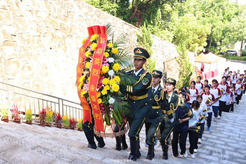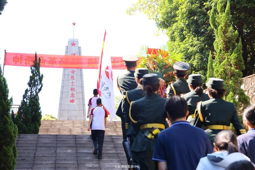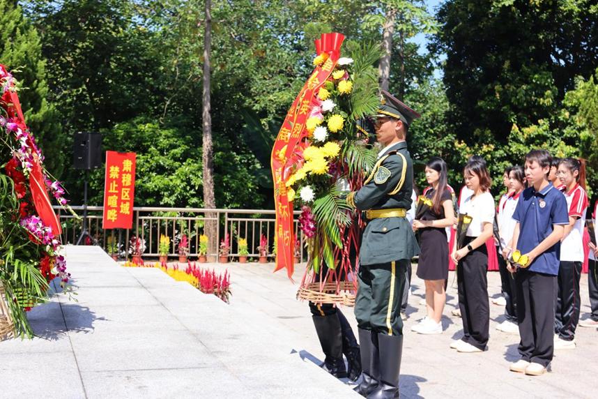 最后,全体师生在国旗护卫队仪仗队的带领下环绕烈士纪念碑一周,瞻仰英雄烈士。