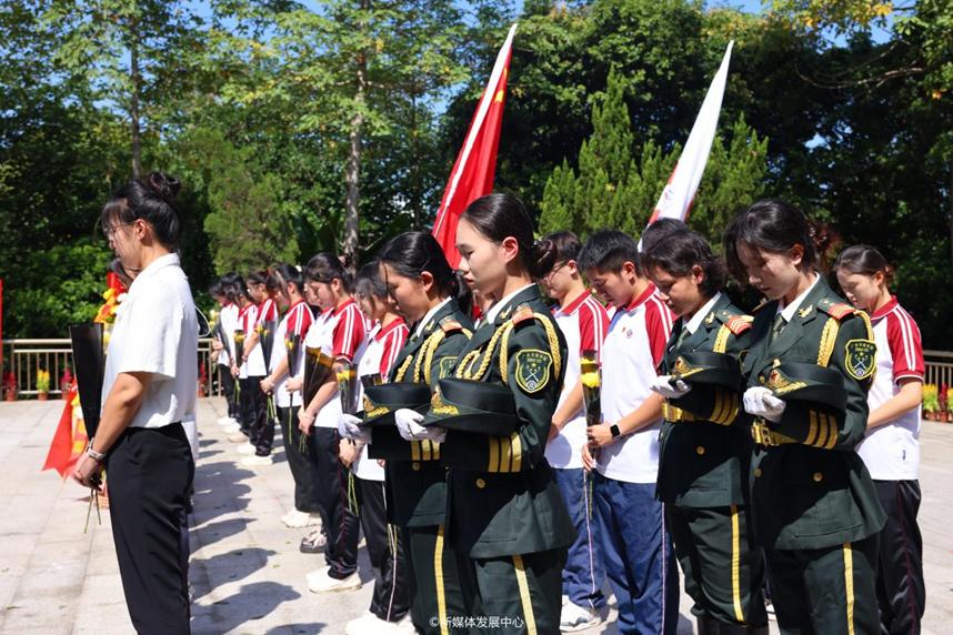 随后,进行默哀仪式。师生代表共同向英勇牺牲的革命烈士默哀、鞠躬致敬。