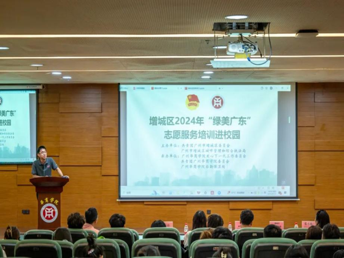 ——“绿美广东”志愿服务培训走进校园。为深入贯彻习近平生态文明思想、《中共广东省委关于深入推进绿美广东生态建设的决定》精神,提升华商青年环保意识。共青团广州市增城区委员会和广州市增城区城市管理和综合执法局联合广州华商学院关心下一代工作委员会、共青团广州华商学院委员会和后勤保卫处等部门于2024年9月12日开展增城区2024年“绿美广东”志愿服务培训进校园活动。