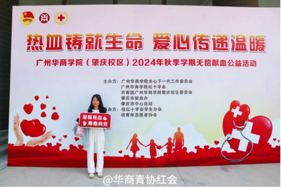 为进一步弘扬“无偿献血”公益精神,增强华商学子的责任意识、公民意识和奉献意识,让更多的人加入到无偿献血的队伍中来。2024年10月11日,广州华商学院关心下一代工作委员会、广州华商学院红十字会、共青团广州华商学院肇庆校区委员会联合肇庆市献血办、肇庆市中心血站在肇庆校区开展“热血铸就生命,爱心传递温暖”2024秋季学期无偿献血公益活动。本次献血活动广州华商学院(肇庆校区),累计献血总量达38600毫升。